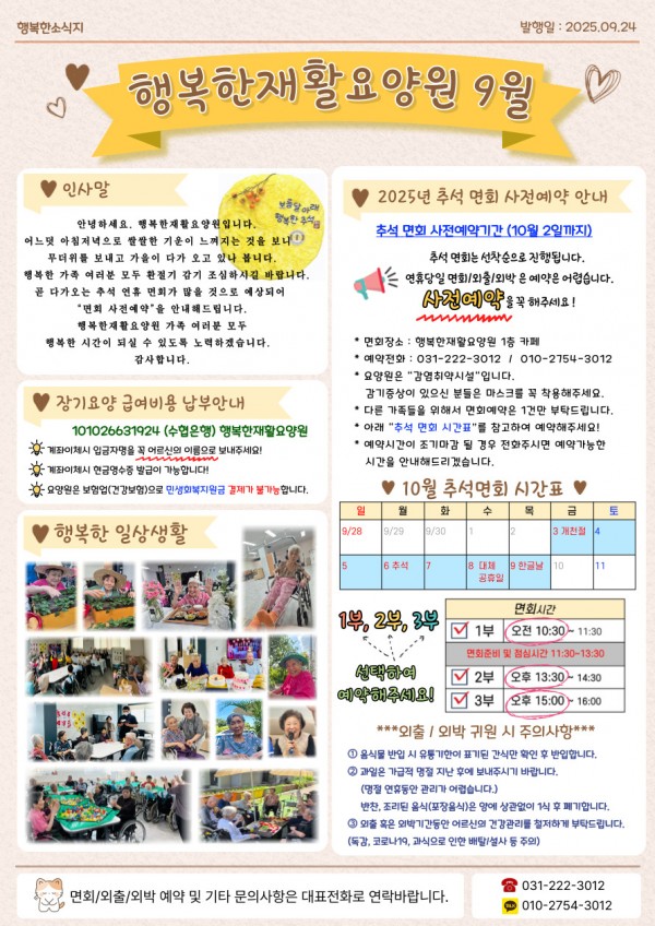 2025년 9월 안내문 페이지 정보 작성자 행복한요양원 작성일25-09-29 11:49 조회19회 댓글0건 관련링크 다음글 목록 본문 2025년 9월 안내문 댓글목록 등록된 댓글이 없습니다. 다음글 목록